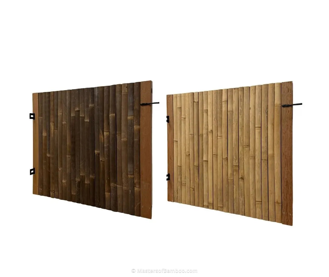 Bamboe is een natuurproduct, maar door onze strikte kwaliteitscontroles is het verschil in dikte en kleur bij onze poorten altijd zo beperkt mogelijk. Elke tuindeur verlaat onze werkplaats pas als deze perfect is. Om het je extra makkelijk te maken, worden al onze bamboepoorten bovendien zeer compleet geleverd: inclusief scharnieren, duimplaten en een goed slot of sluiting. Je kunt er direct mee aan de slag!